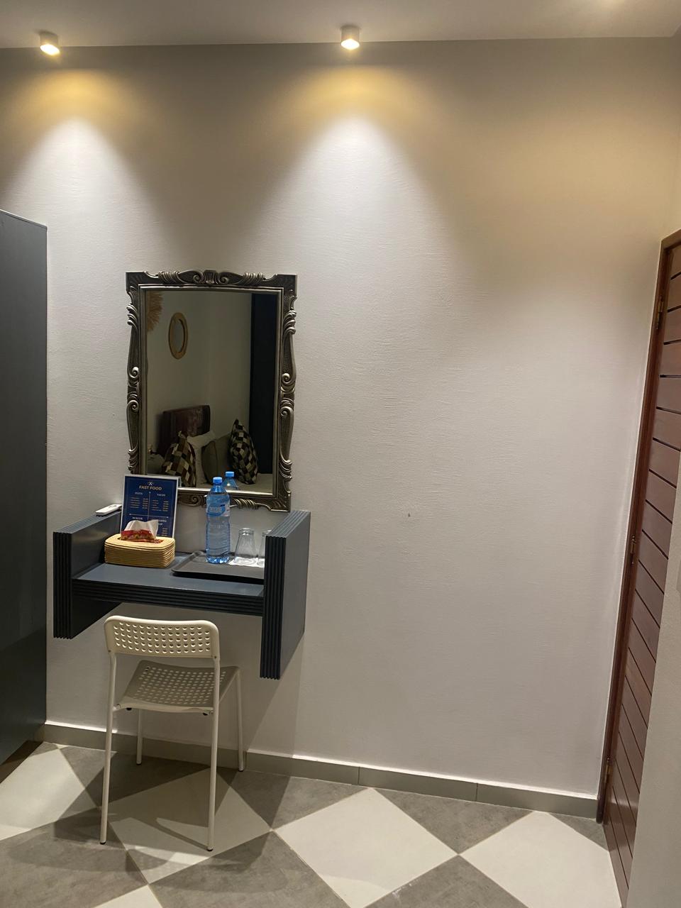 Élégante et spacieuse, la chambre Azur vous invite à vous relaxer dans un cadre lumineux, entre douceur et raffinement.