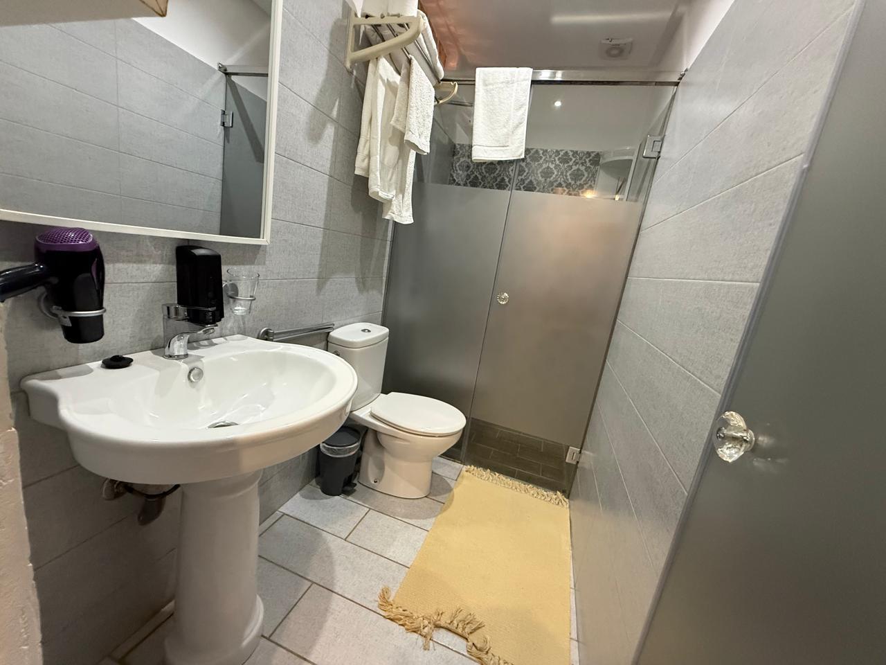 La salle de bains privative est dotée d’une douche et d’articles de toilette. La chambre s’ouvre sur un balcon, permettant de profiter de l’extérieur dans un cadre agréable. L’ensemble offre un espace pratique, lumineux et confortable pour un séjour en toute sérénité.